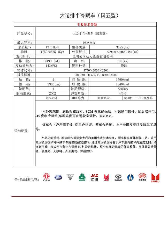 大運(yùn)排半冷藏車(國五型)