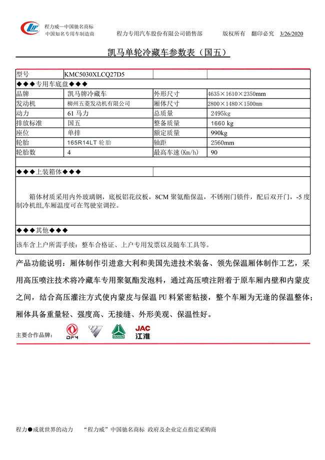 凱馬單輪冷藏車